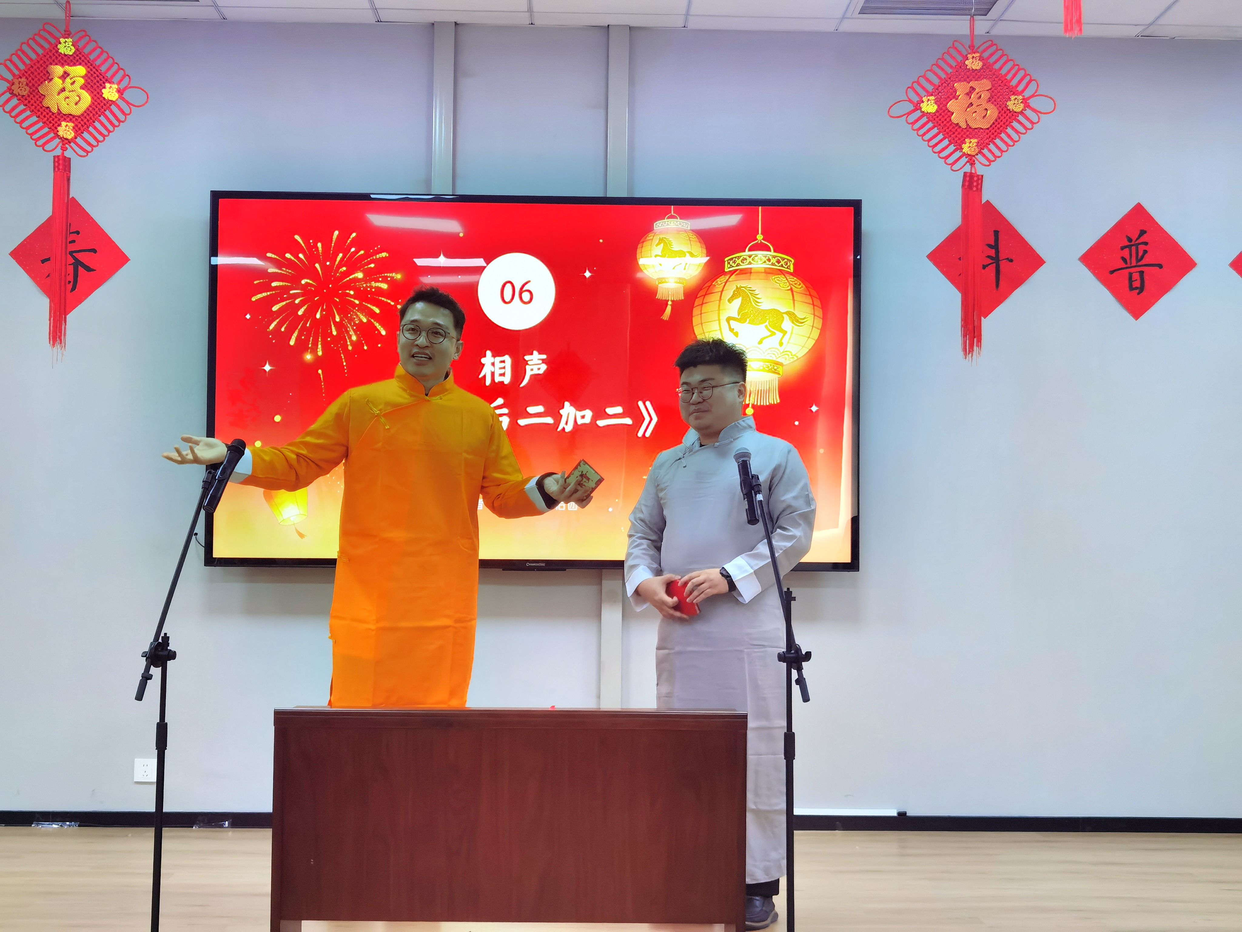 科普所各支部、各处室积极参与、各展所长,精心编排并奉献了《把科学交给人民——致敬科普先驱》、《当·高雅人士遇见科普》、《反邪三句半》、《博士后二加二》等10个丰富多彩的文艺节目,活动现场还穿插互动游戏等,气氛热烈活跃。整场演出节目形式多样、内容丰富,全体职工将对生活的热爱、对事业的执着融入自编自演的节目之中,营造出喜庆祥和、年味浓郁的节日氛围。