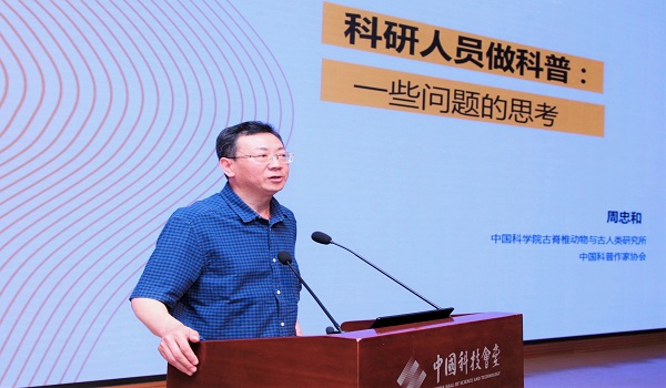 周忠和作了题为《科研人员做科普:一些问题的思考》的主旨报告。周忠和从为什么要鼓励科研人员做科普之问切入,分析了当前科研人员做科普的困惑,从政策设置、个体参与等不同视角,提出改善科学家不愿、不屑、不敢、不擅长做科普现象的思考和建议,他呼吁广大科研人员积极投身科普,为推动科学文化建设与全民科学素质提升贡献力量!在28日的大会学术报告环节,王挺、天津市科协党组书记、常务副主席陆为民,生态环境部环境与经济政策研究中心党委副书记胡军分别作了题为《面向2035 的科学素质建设路径思考》《天津全域科普的探索与实践》《“十四五”期间加强生态环境科普工作的建议》的报告,从理论研究、实践探索方面开展学术交流。当天下午,清华大学社会科学学院教授李正风、中国科学院科学传播局高级业务主管徐雁龙、陕西师范大学教授胡卫平、中国科学院大学人文学院教授张增一分别作了题为《关于新时代公民科学素质的再思考》《关于科技资源科普化的思考与实践——以中国科学院为例》《基于核心素养的义务教育科学课程与教学改革》《社交媒体应急科普能力探析:以“双黄连事件”为例》的学术报告,研讨当下与未来科学素质建设和科普工作的推进机制和发展方向。