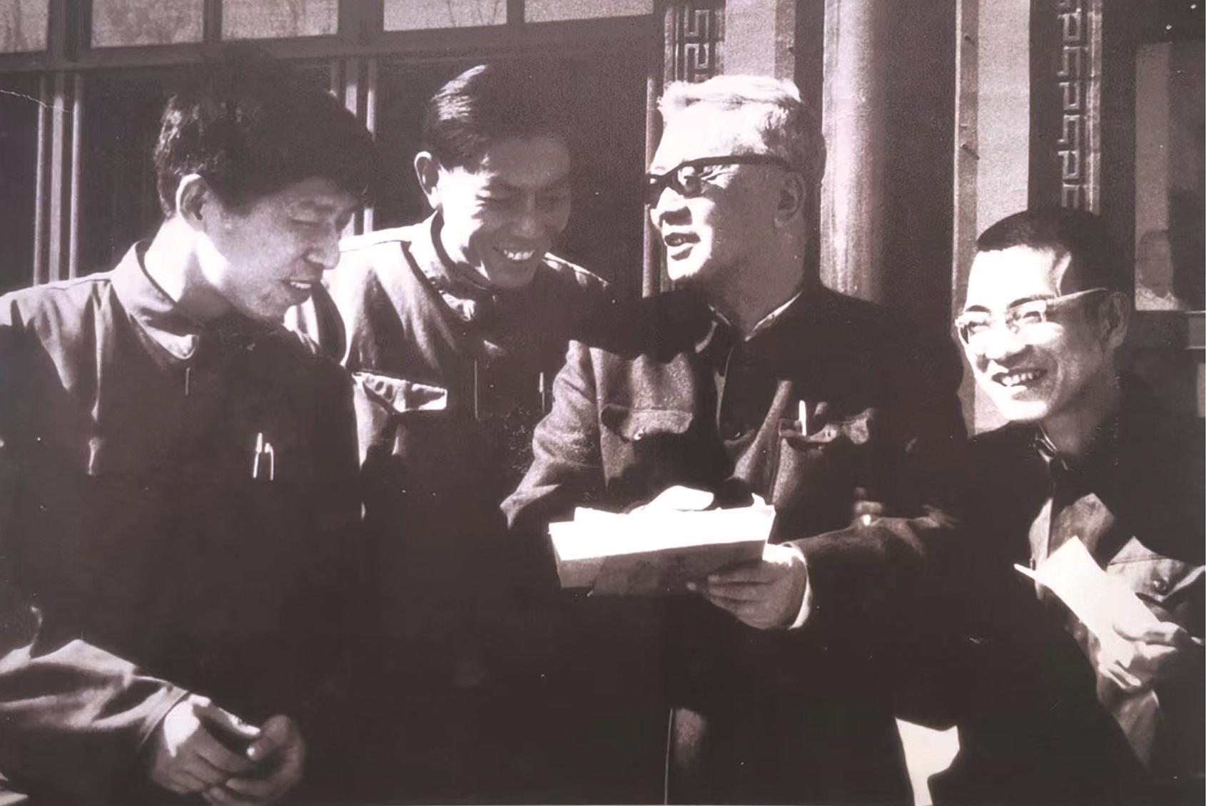 图③:1978年,全国科技大会上华罗庚与他的学生陈景润(右一)、杨乐(左一)、张广厚(左二)交谈。