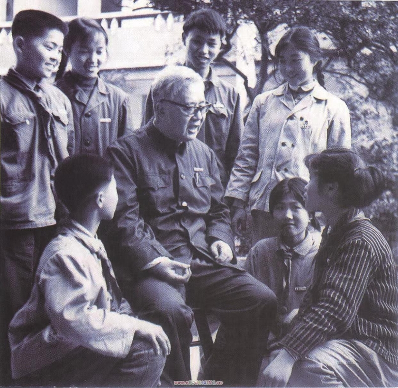 图②: 1980年华罗庚与金坛县中学三好学生代表交谈。